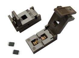 •翻蓋設(shè)計(jì),適應(yīng)小體積器件的放置和提��;•專用接觸簧片,確保和器件接觸良好;•接觸簧片選用優(yōu)質(zhì)鈹銅,經(jīng)良好的表面處理工藝,即保持彈性又具有很長的使用壽命;•接觸簧片完全鍍金,足夠的鍍金厚度確保長期使用接觸良好;•雙工位設(shè)計(jì),減低成本增加空間利用率;•特種塑料制造,能耐受潮濕和高溫環(huán)境,最高使用溫度可達(dá)175 ℃。•超短訂貨周期。APPLICABLE IC DIMENSIONS & SOCKET DIMENSIONS單位:mm