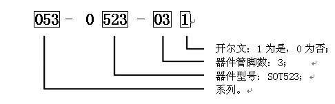 產(chǎn) 品 型 號 IC封裝 a b b1 c D e A B C 053-0523-030 SOT523-3L 1.6±0.1 1.6±0.15 0.8 0.68±0.1 0.3±0.05 1.0 24.7 12.6 18.0 053-0523-031 SOT523-3L 1.6±0.1 1.6±0.15 0.8 0.68±0.1 0.3±0.05 1.0 24.7 12.6 18.0DESCRIPTION & ORDERING INFORMATION