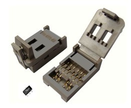 •翻蓋設計,適應小體積器件的放置和提取;•專用接觸簧片,確保和器件接觸良好;•接觸簧片選用優(yōu)質鈹銅,經(jīng)良好的表面處理工藝,即保持彈性又具有很長的使用壽命;•接觸簧片完全鍍金,足夠的鍍金厚度確保長期使用接觸良好;•雙工位設計,減低成本增加空間利用率;•特種塑料制造,能耐受潮濕和高溫環(huán)境,最高使用溫度可達175 ℃。•超短訂貨周期。APPLICABLE IC DIMENSIONS & SOCKET DIMENSIONS單位:mm