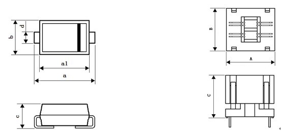 產(chǎn) 品 型 號(hào) IC封裝 a a1 b c d A B C 011-0102-041 SMA 5.04±0.24 4.3±0.3 2.7±0.2 2.22±0.22 1.4±0.2 17.0 15.0 14.7 011-0202-041 SMB 5.33±0.25 4.36±0.3 3.62±0.32 2.29±0.15 2.0±0.1 17.0 17.0 14.7 011-0302-041 SMC 6.85±0.25 6.9±0.2 5.9±0.3 2.3±0.3 3.0±0.25 19.6 22.6 14.7DESCRIPTION & ORDERING INFORMATION