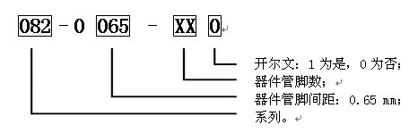 產(chǎn) 品 型 號 IC封裝 a b b1 c D e A B C 082-0065-160A TSSOP16 5.0±0.1 6.4±0.3 4.4±0.2 1.0±0.1 0.25±0.05 0.65 21.0 17.0 15.5 082-0065-200A TSSOP20 6.5±0.2 6.4±0.3 4.4±0.2 1.0±0.1 0.2±0.05 0.65 21.0 17.0 15.5 082-0065-240A TSSOP24 7.8±0.2 6.4±0.3 4.4±0.2 1.0±0.1 0.2±0.05 0.65 21.0 17.0 15.5 082-0065-280A TSSOP28 9.7±0.2 6.4±0.3 4.4±0.2 1.0±0.1 0.2±0.05 0.65 21.0 17.0 17.5 082-0065-340A TSSOP34 12.3±0.2 7.8±0.2 5.7±0.2 1.0±0.1 0.3±0.05 0.65 23.0 21.0 17.5DESCRIPTION & ORDERING INFORMATION