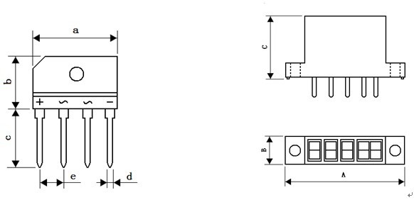 產(chǎn) 品 型 號 IC封裝 a b c D e A B C 003-0006-101 KBP/KBJ/GBU/GBJ 25.0±0.2 15.0±0.3 17.5±0.3 1.0±0.1 7.5±0.2 43.5 9.0 20.0DESCRIPTION & ORDERING INFORMATION