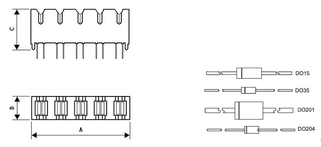 產(chǎn) 品 型 號(hào) IC封裝 A B C 003-0005-005 軸向二極管 38.0±0.02 9.0±0.2 15.5±0.2